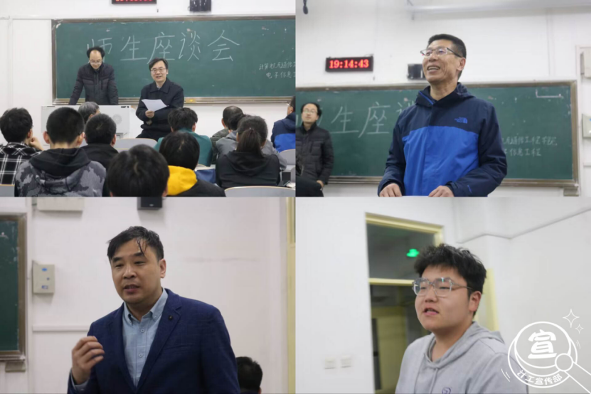 座谈会由万聪老师主持,46名学生代表和部分老师参加了座谈会。座谈会上,学生们积极发言,就在本学期中课堂学习、专业学习与竞赛的平衡、考研准备等方面遇到的问题,提出了各自的见解,并与老师们进行了交流。