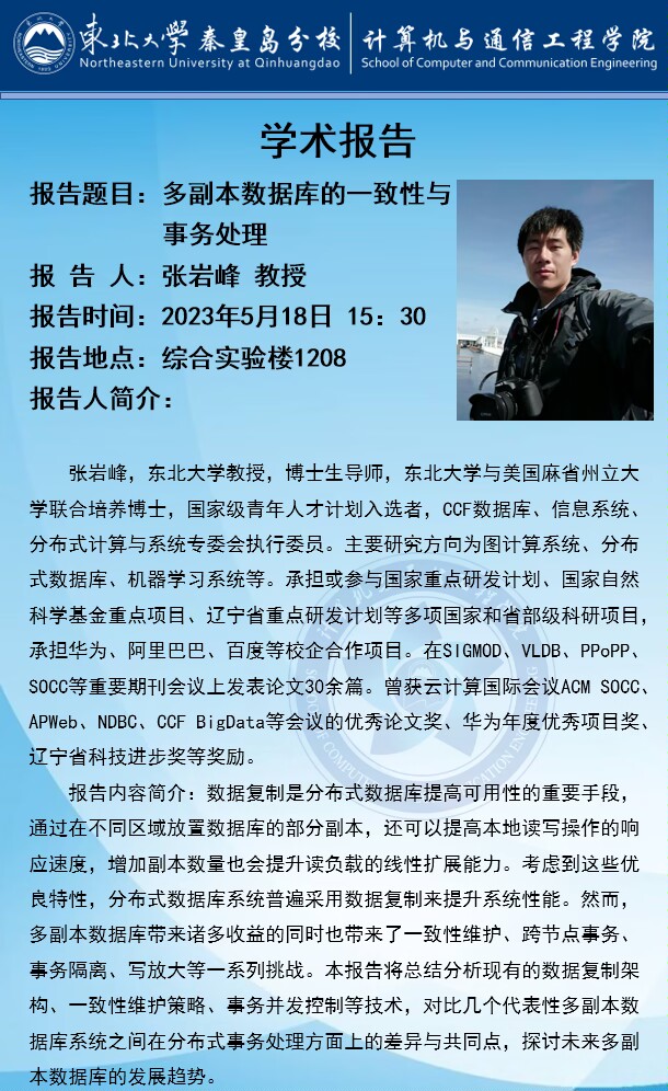 学术报告丨张岩峰:多副本数据库的一致性与事务处理