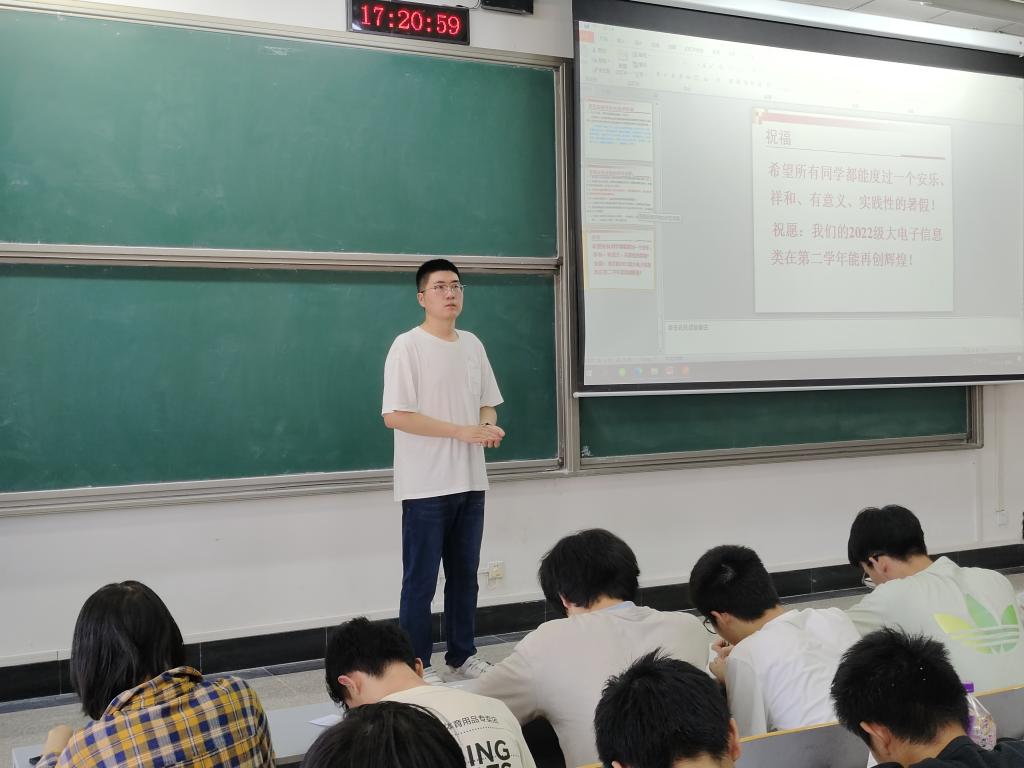 正值2022-2023学年期末阶段,为迎接即将到来的期末考试及专业大类分流志愿填报,帮助同学们增进专业认知,做出更适合自己的专业选择,同时推动本学期思想评估的进行,通知期末与下学期的各项安排,计算机类与电子信息类专业大会分别于6月29日、30日顺利举行,本专业全体同学参会。大会分别由365上市公司官网计算机类辅导员陈晶晶、电子信息类辅导员庄天宇主持。会上邀请到学院院长宋昕对通信工程专业做进一步讲解。