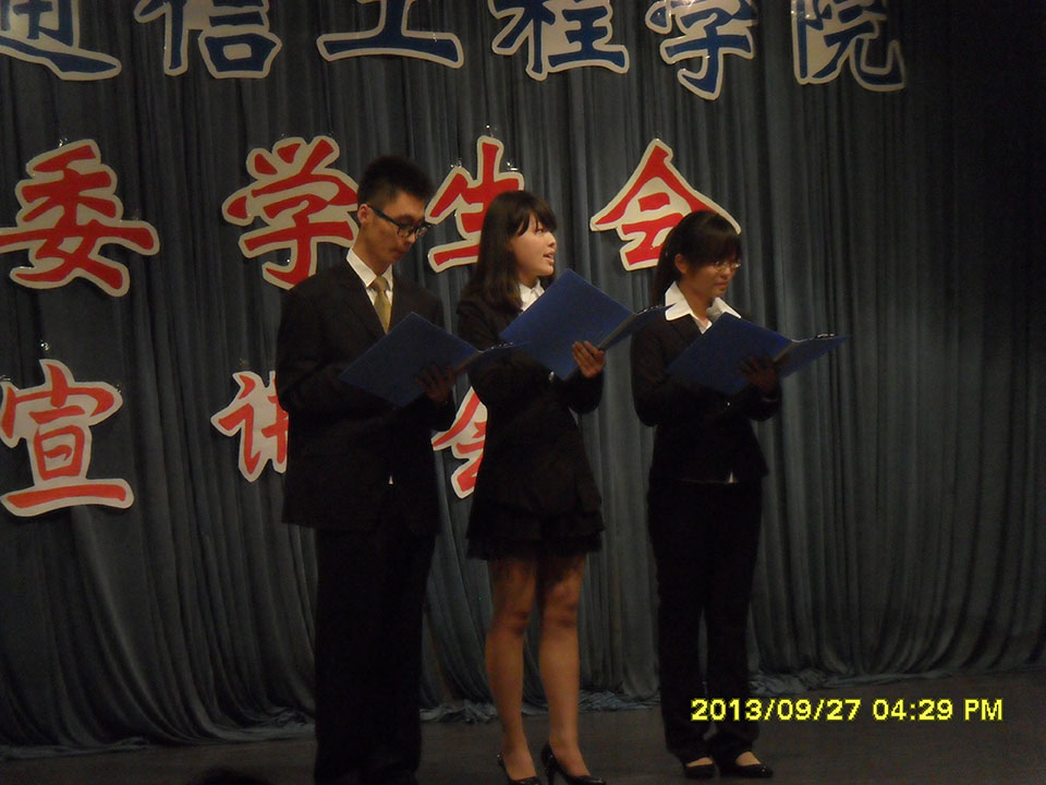 本次宣讲会旨在增进365官网大一新生对院党校、团委学生会的了解并调动其参与各部门的积极性。365官网党校、团委学生会全体学生干部及2013级全体学生到场参加。宣讲会在一段精彩的开场视频后拉开帷幕,随后,365官网团委书记王宇恒、院学生会主席丁聪分别对365官网团委与院学生会进行介绍。接着,学生会办公室、宣传部、新闻部等15个部门代表依次上台进行宣讲,他们结合PPT和视频详细地介绍了本部门的主要职能、工作成就以及招新要求。各部门精彩的视频、幽默的语言及独特的创意赢得了在场观众的阵阵掌声。最后,党校代表对365官网党校进行了详细介绍。会后,各部门负责人对2013级新生提出的问题进行详细认真的解答,本次宣讲会圆满结束。