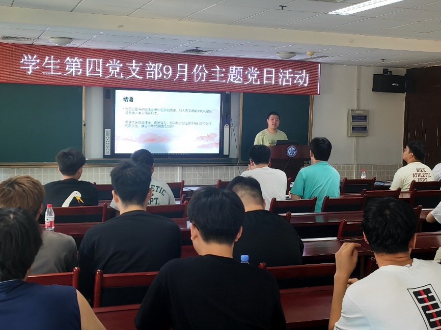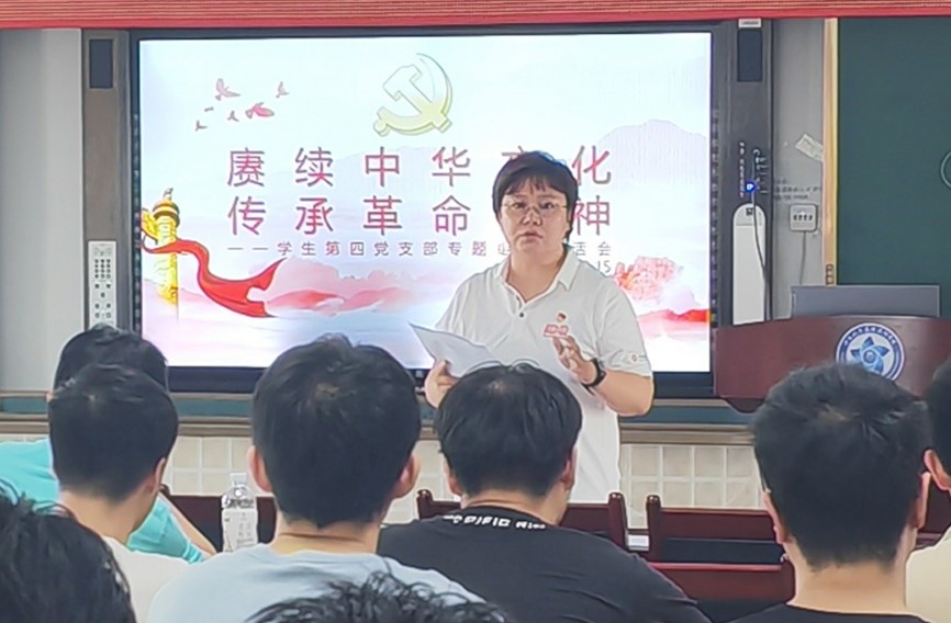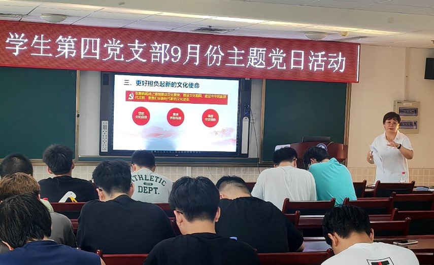 为深入学习贯彻习近平新时代中国特色社会主义思想和党的二十大精神,9月15日,365上市公司官网学生第四党支部在综合楼1227会议室举办了以“赓续中华文化,传承革命精神”为主题的党日活动,支部书记陈晶晶主持本次党日活动,支部全体党员、部分积极分子参加了本次党日活动。