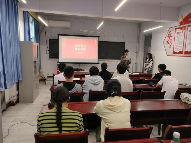 本次党员大会由支部成员李美霖主持,大会主要围绕3个方面展开。首先进行支部委员的换届选举工作,由胡家铭宣读选举办法,于鹏和杜柯宇分别担任监票人、计票人,经过正式党员的酝酿讨论,最终同意选举庄天宇、张鹏、潘高唯为党支部委员。接下来,进行廉洁主题教育。支部书记领学了《习近平总书记关于廉洁文化建设的重要论述》,正式党员也分别选读并分享了其中的内容。